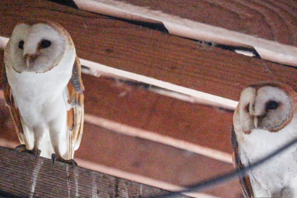 A notre arrivée, une chouette effraie, que nous avons rapidement surnommée Charlotte était installée dans le conduit de cheminée qui devait être détruit lors de la réfection de la toiture.